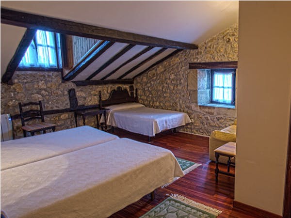 Located on the 3rd floor, this room features a double bed and a small seating area with 2 single beds. Both rooms are separated by a door and have a TV.